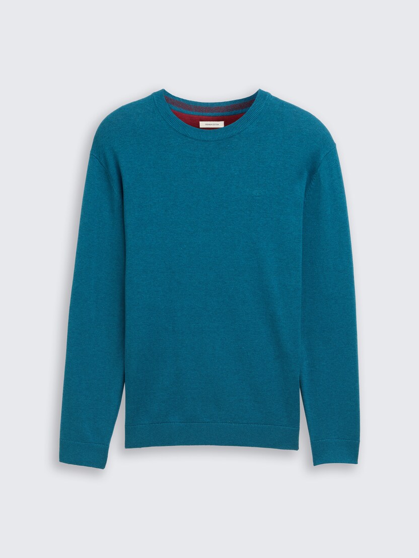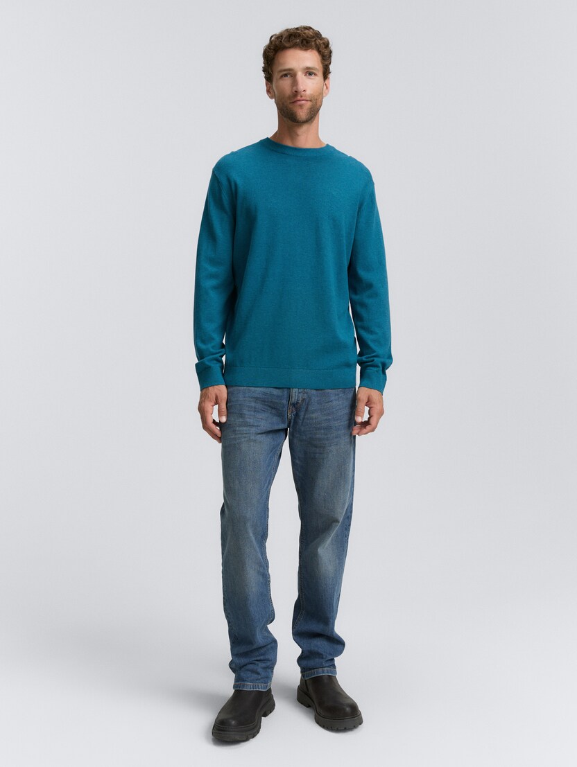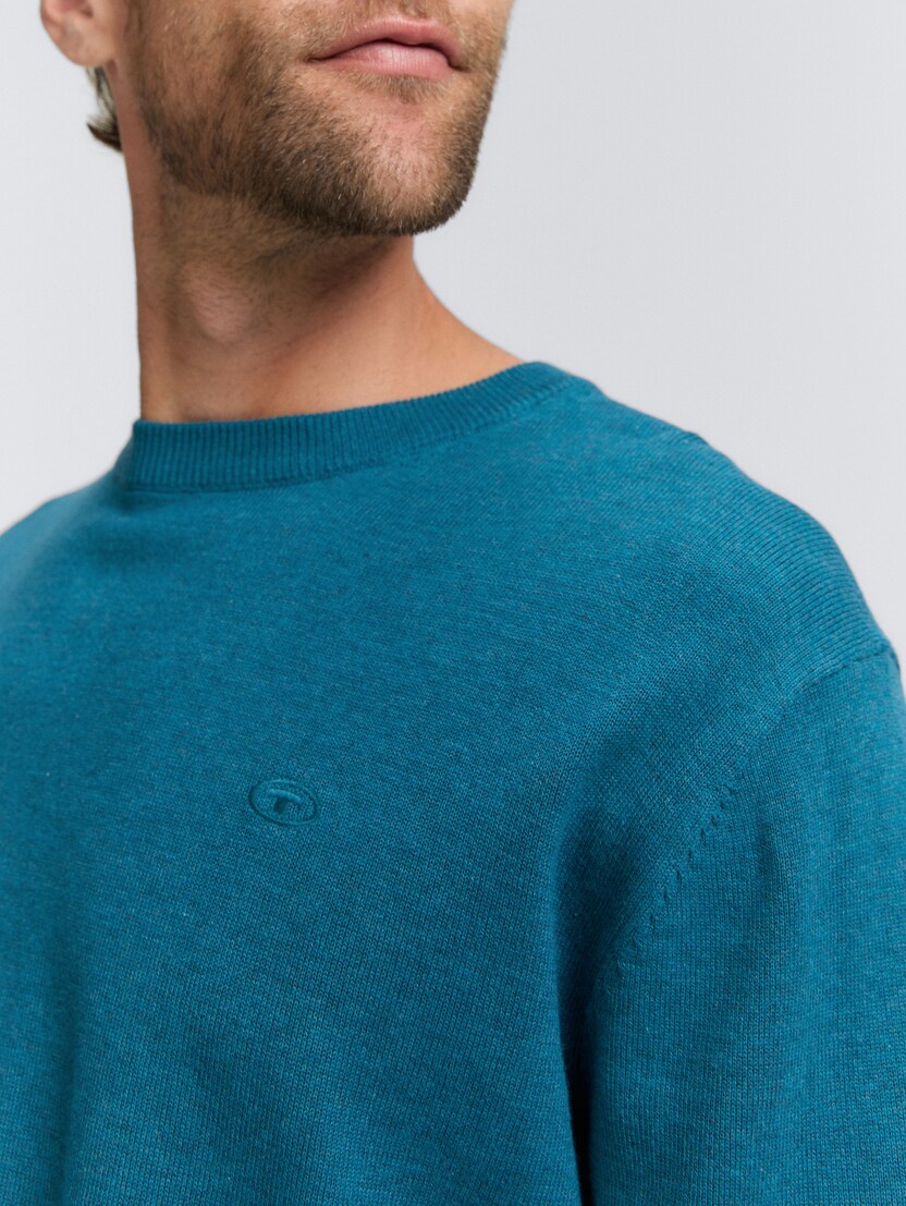Pleteni pulover s okruglim izrezom - Plava