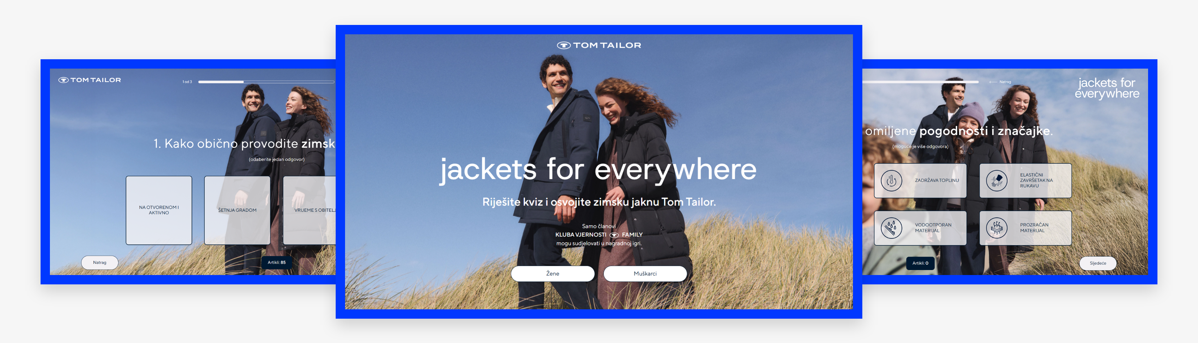 Hladni dani su pred vratima, stoga je sada savršeno vrijeme za pripremu za zimske temperature. Sudjelujte u našoj nagradnoj igri i osvojite glavnu nagradu – zimsku jaknu Tom Tailor! Svaki sudionik dobit će iznenađenje koje će mu zasigurno uljepšati dan. Otkrit ćemo ga nakon što uspješno riješite kviz, stoga ne zaboravite provjeriti svoju e-poštu. Za sudjelovanje morate biti član Kluba vjernosti Tom Tailor FAMILY. Nagradna igra traje od 10.11. do 25.11.2025. (uključujući i ovaj datum).