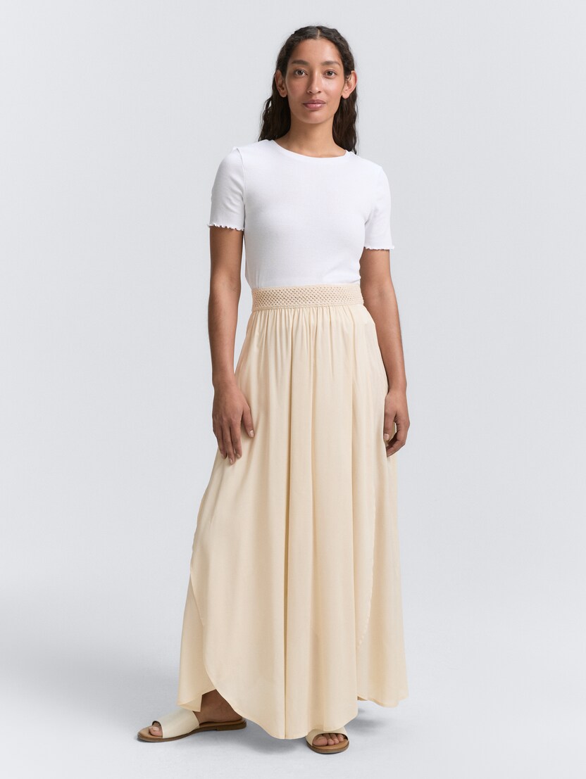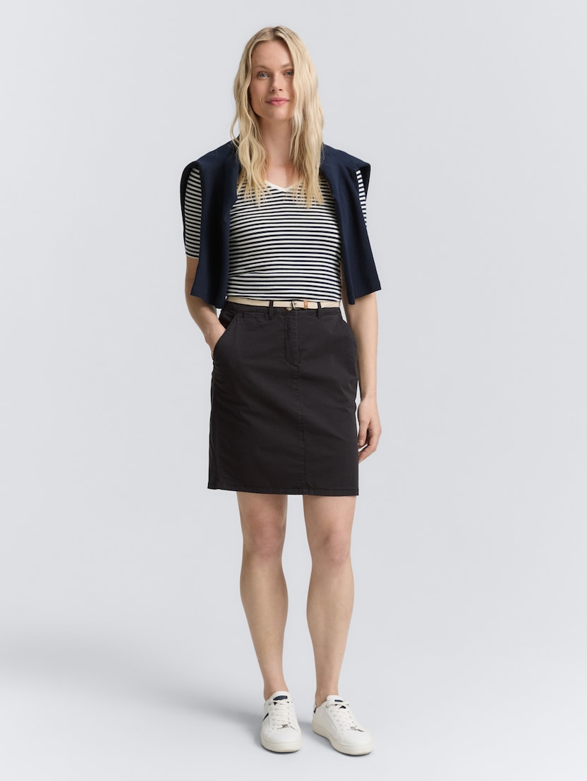 Bi radi nosili krilo, ki splošči trebuh? Potem se morate odločiti za trden material. Krilo iz džinsa je odlična izbira; pas ne sme biti prenizek – TOM TAILOR jih ponuja v številnih različnih modelih. Želite prikazati še tanjšo silhueto – v tem primeru morate izbrati model v temnejši barvi, kot je črna ali temno modra. Z njim boste vedno videti vitkejši in enostavno ga lahko kombinirate z drugimi barvami.