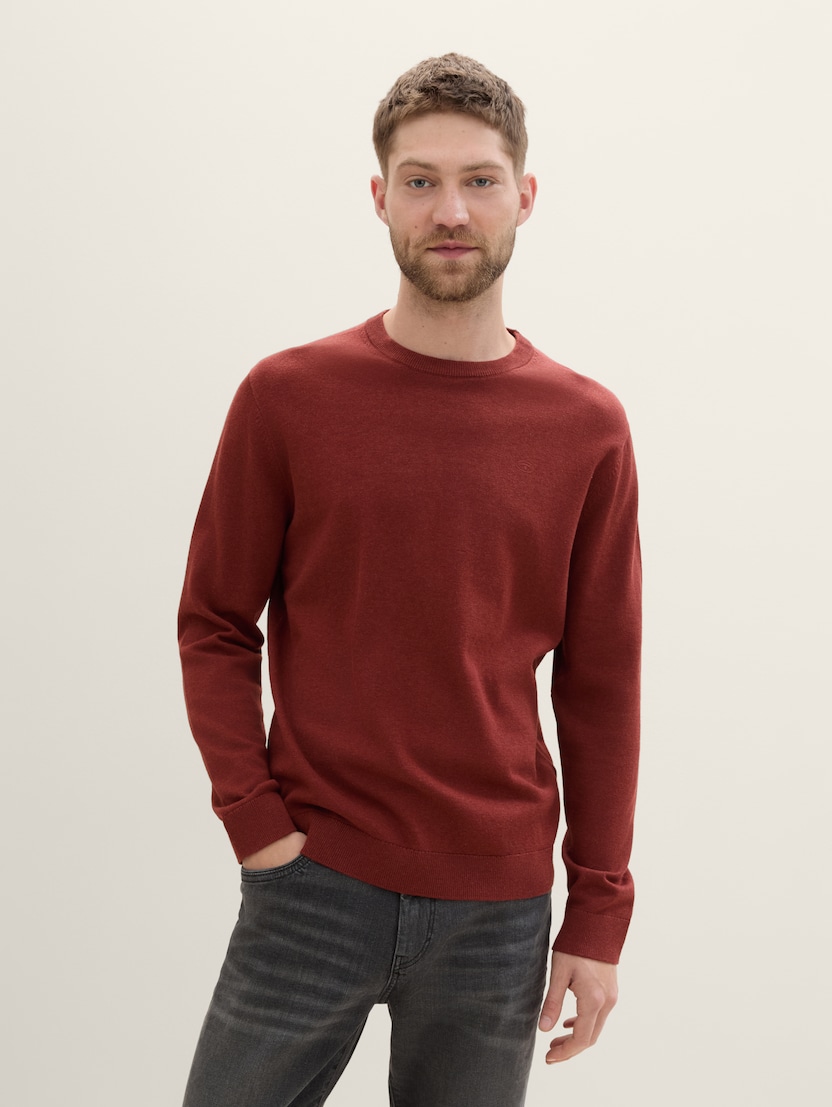 Pleteni pulover s okruglim izrezom - Crvena