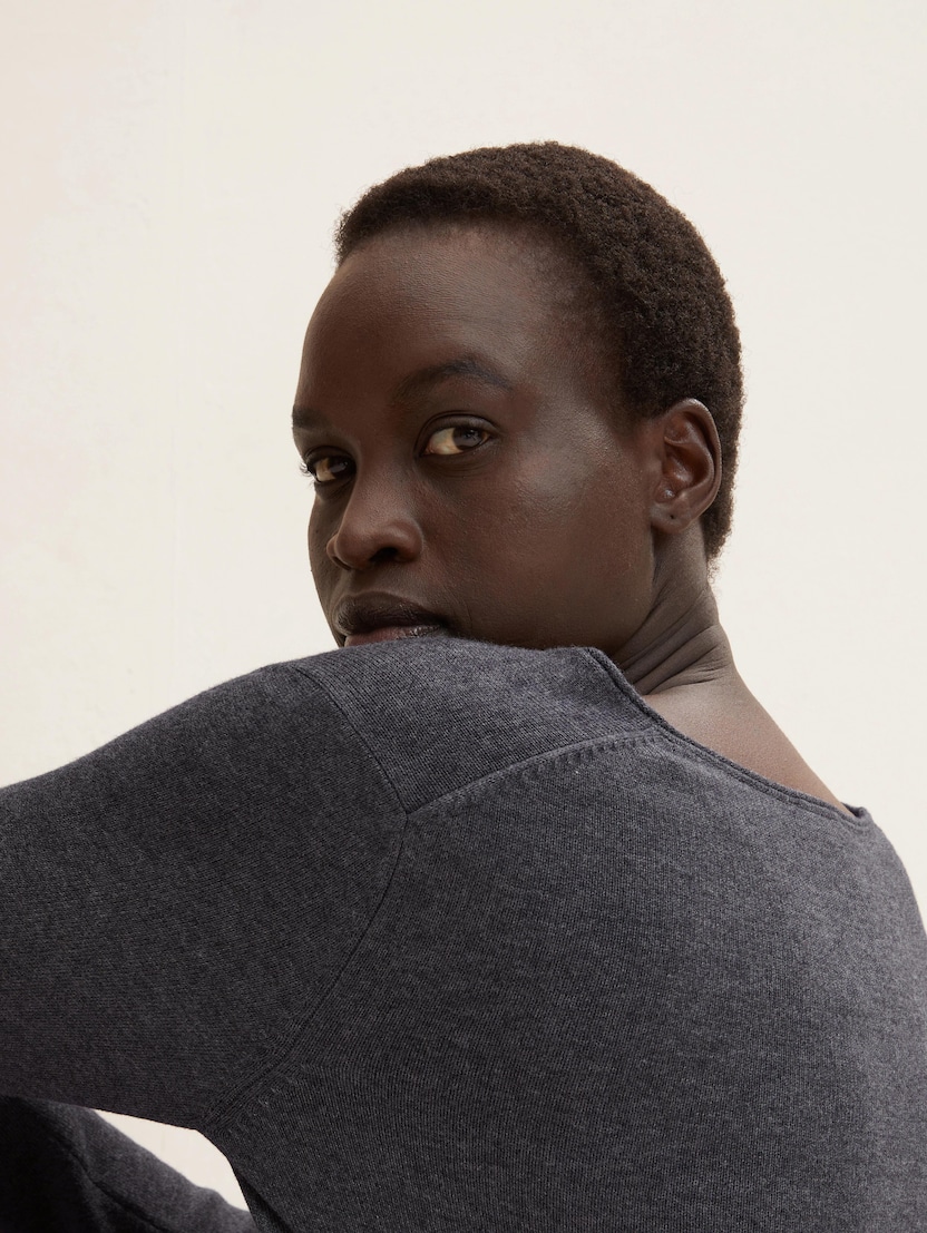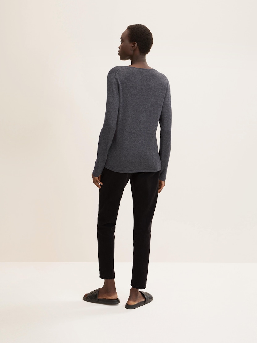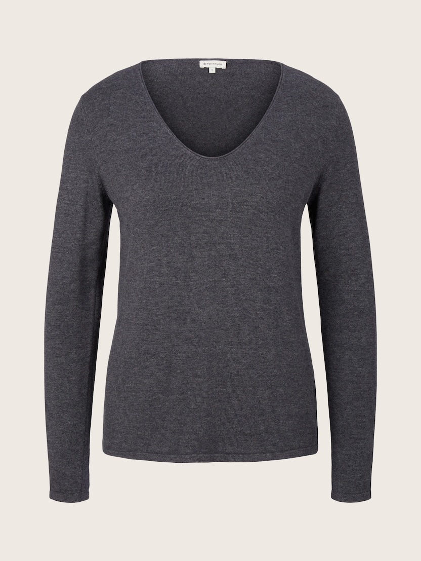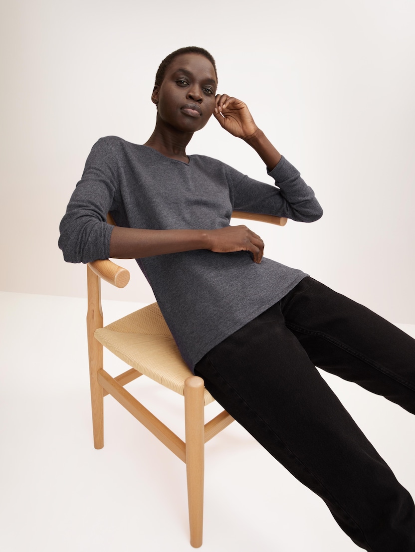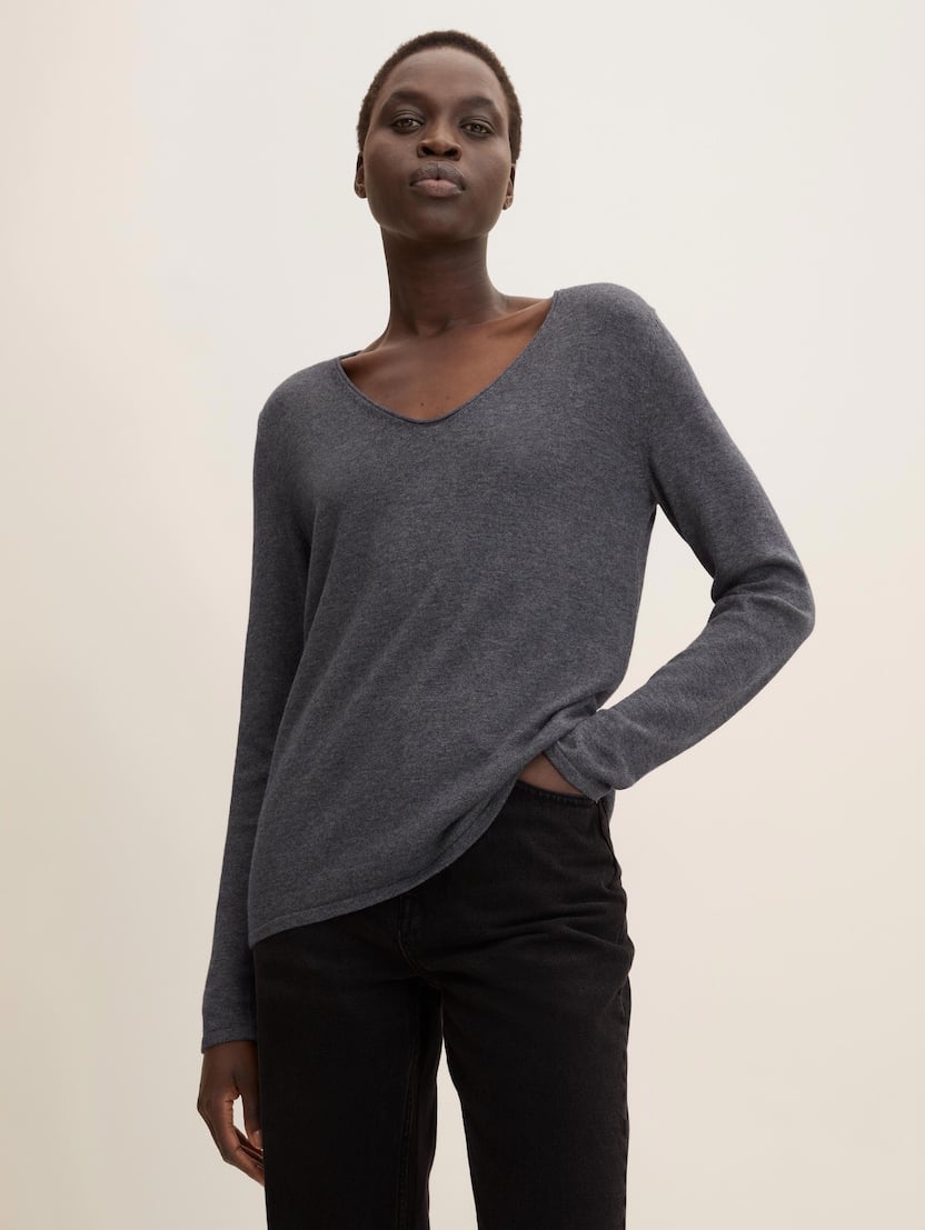 Pleteni pulover s V-izrezom - Siva
