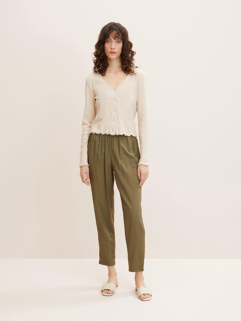 Otkrijte Tom Tailor ženske hlače! Izrađene od kvalitetnih materijala i u različitim krojevima pristaju svim figurama. Široke hlače, hlače od baršuna i svečane hlače: u našem asortimanu zasigurno ćete pronaći one koje će biti savršene za vas. Pronađite prave za sebe i uživajte u udobnosti..