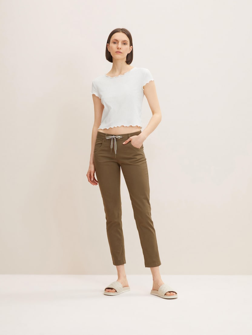 Chino hlače, poput modela TOM TAILOR Mia, zaista su svestrane: možete ih obući za dugi dan kupnje, poslovni sastanak ili spoj. To su sportske i elegantne hlače u isto vrijeme i zato ih jednostavno morate imati. Chino hlače malo su opuštenije u bokovima i sužavaju se prema gležnjevima. Imaju bočne džepove sa ušivenim rubom: ako želite postići neformalniji izgled, samo malo zavrnite nogavice.