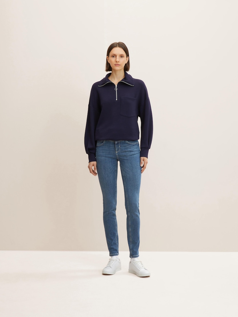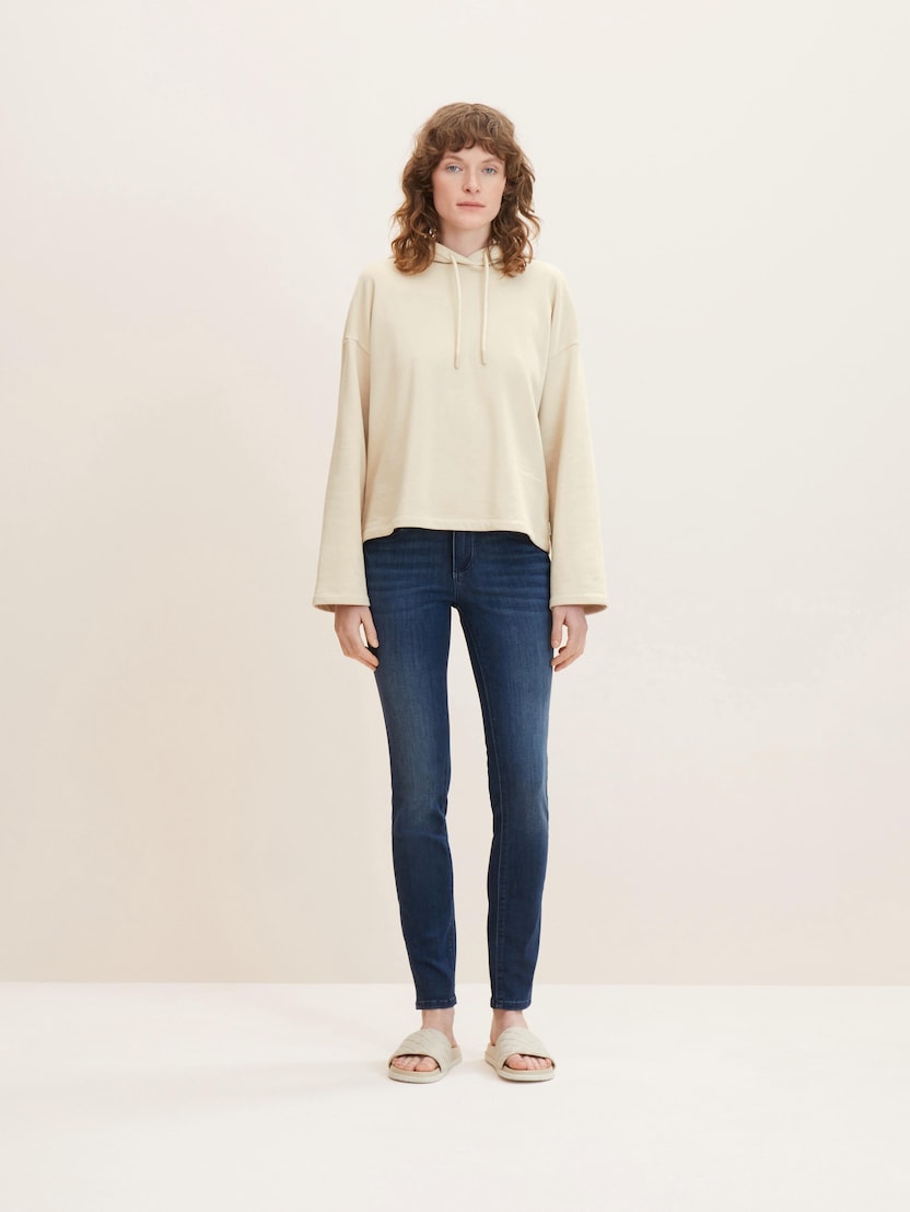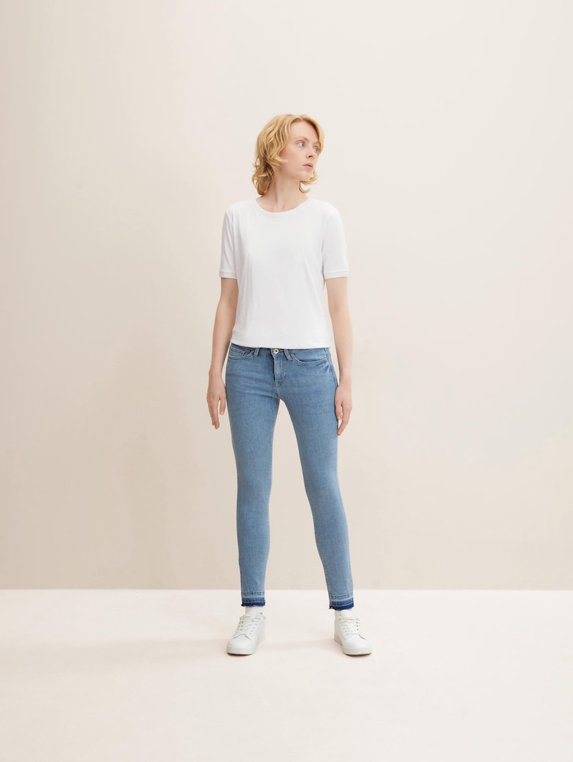 Tajna uspjeha je u njihovoj svestranosti: bilo da ih nosite u kombinaciji sa širokom majicom, sakoom po mjeri, kratkim puloverom ili dugom vestom – ako traperice tijesno pristaju, dobar izgled je zajamčen. To vrijedi i za odabir cipela: tenisice, čizme ili elegantne visoke potpetice – pripijene i uske Tom Tailor traperice uvijek su pravi izbor!