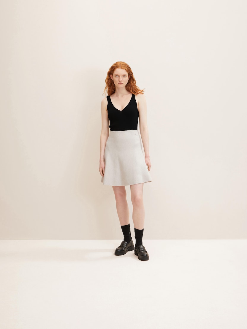 Bi radi nosili krilo, ki splošči trebuh? Potem se morate odločiti za trden material. Krilo iz džinsa je odlična izbira; pas ne sme biti prenizek – TOM TAILOR jih ponuja v številnih različnih modelih. Želite prikazati še tanjšo silhueto – v tem primeru morate izbrati model v temnejši barvi, kot je črna ali temno modra. Z njim boste vedno videti vitkejši in enostavno ga lahko kombinirate z drugimi barvami.
