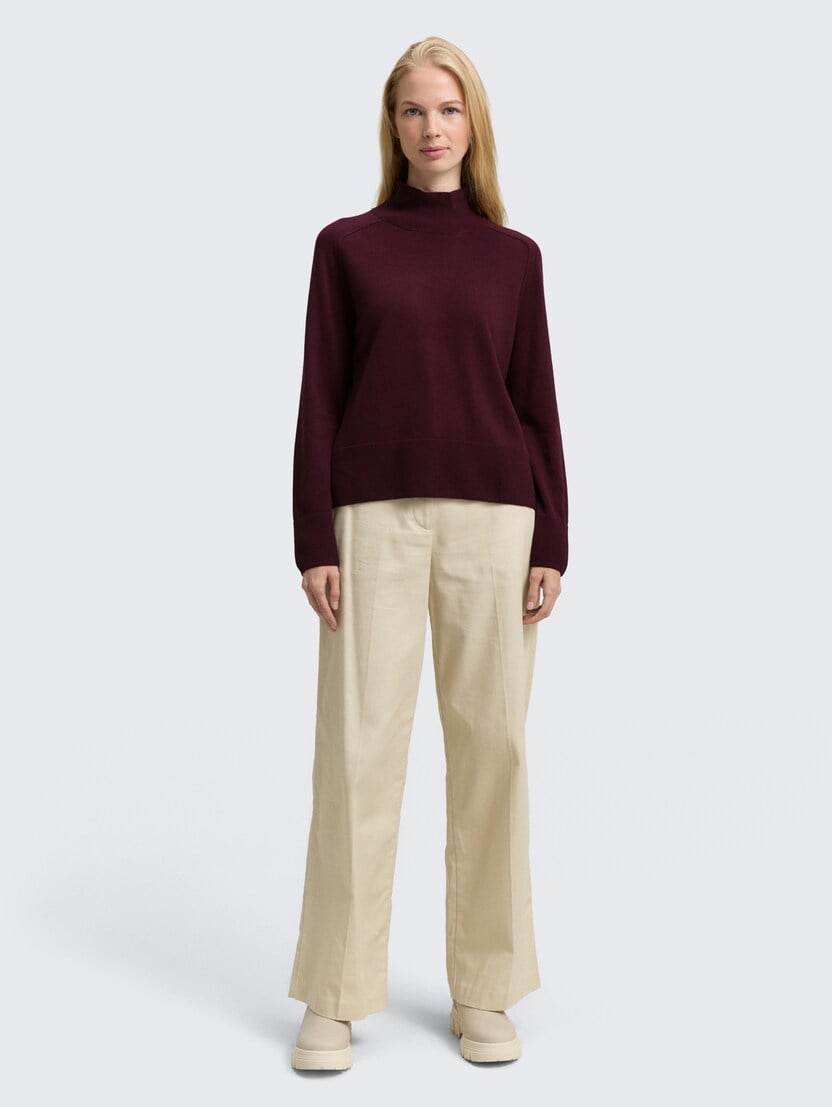 Pulover din bumbac şi caşmir - Roşu