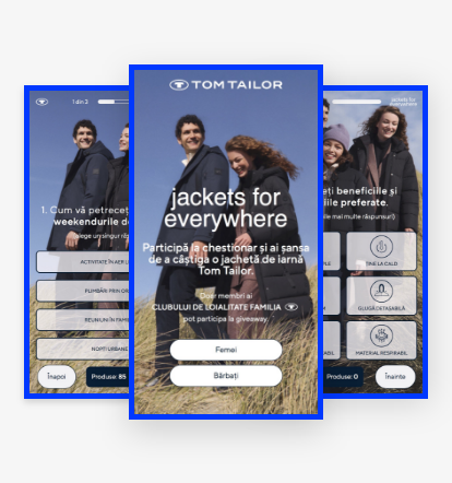Zilele reci sunt chiar după colț, așa că acum este momentul perfect să te pregătești pentru temperaturile de iarnă. Participă la concursul nostru și câștigă marele premiu – o jachetă de iarnă Tom Tailor! Fiecare participant va primi o surpriză care cu siguranță îi va însenina ziua. O vom dezvălui după ce vei completa cu succes chestionarul, așa că nu uita să-ți verifici căsuța poștală de e-mail. Pentru a participa, trebuie să fii membru a FAMILIEI Clubului de Fidelitate Tom Tailor. Concursul este în perioada 10 - 25 Noiembrie 2025, inclusiv.