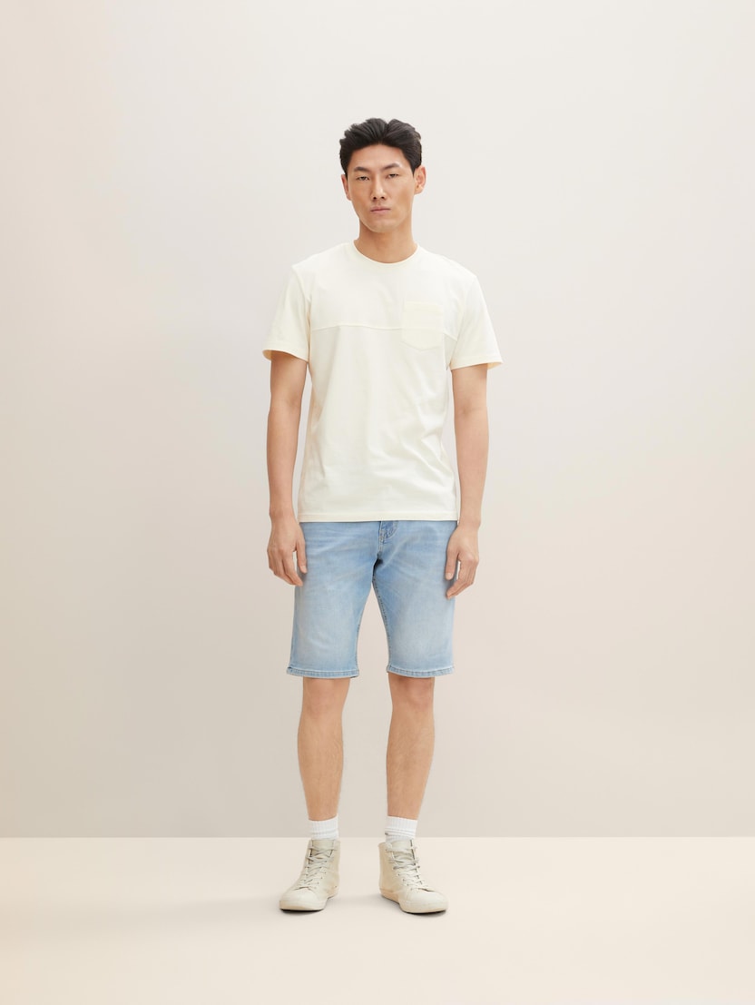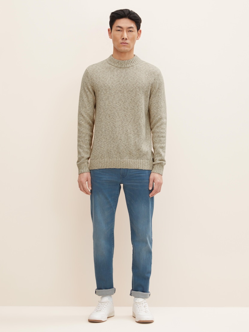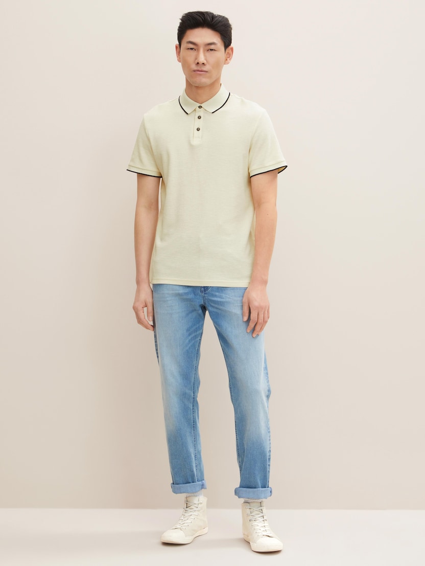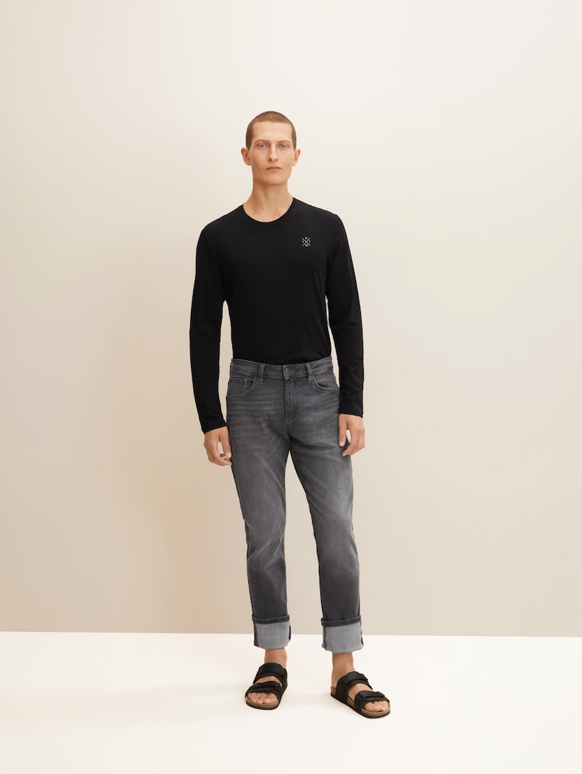 U našem asortimanu Tom Tailor teksas proizvoda za muškarce možete pronaći moderne muške košulje i jakne, kao i veliki izbor muških chino pantalona u različitim bojama, klasičnog ili uskog kroja. U našem vodiču po muškim teksas farmerkama ćete naći pregled različitih krojeva. Osim toga, možete da vidite kako modeli Piers, Aeden i Culver izgledaju na muškim modelima.