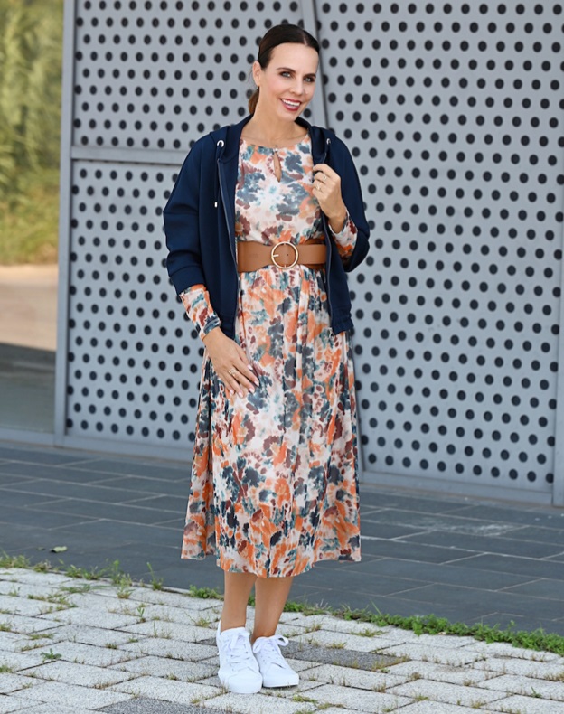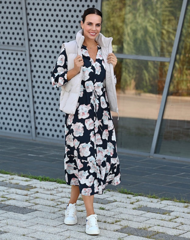 Še posebej so jo navdušile prehodne jakne, ki jih je spretno vključila v različne videze. Med drugim je izbrala brezrokavnik, športno jopico s kapuco ter večni klasiki jeans jakno in usnjeno jakno. Pravi, da je res zanimivo, kako lepo se podajo tako k oblekam, kot tudi jeansu in bolj elegantnim hlačam. Všeč so ji bile tudi različne midi obleke s potiskom, plisirano krilo in udobne kavbojke širokega kroja.